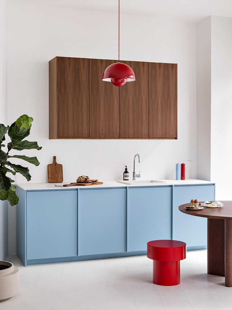 Plus vif que Ciel voilé, Iceberg est un bleu incisif et franc qui s’invite aussi bien sur un dressing que dans la cuisine. Associez-le avec du Noyer naturel pour renforcer sa modernité, et ajoutez une touche de rouge pour transcender l’ensemble. Coup d’éclat à l’horizon.