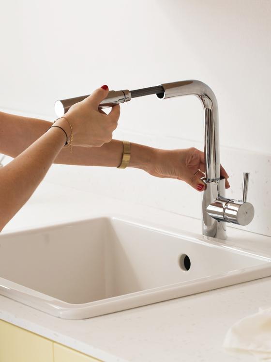 Une ligne contemporaine, des finitions qui soulignent sa modernité et une douchette ultra-pratique cachée dans son bec : Line s’est fait instantanément une place au palmarès de nos accessoires favoris. Version noir mat, chrome ou laiton, il est l’allié des façades U-Shape et des éviers sous plan.
