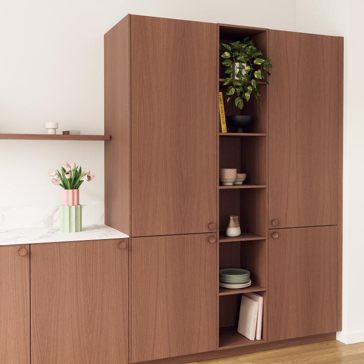 Meuble ouvert, compatible avec les dimensions Ikea Metod. À installer sur des pieds Metod ou à poser au sol.