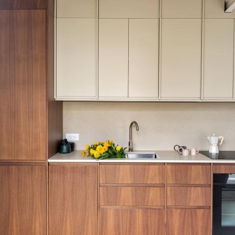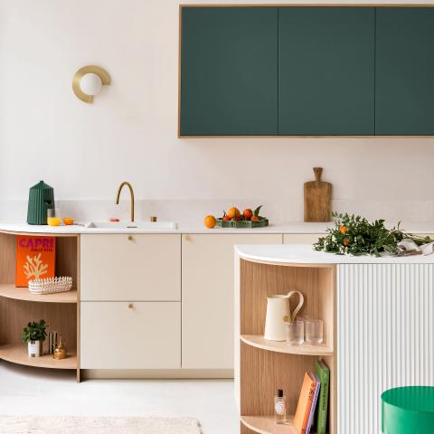 Une cuisine minimaliste qui mêle influences japonaises et chaleur organique.