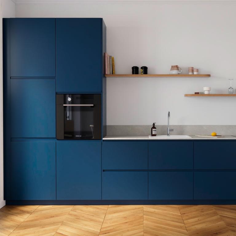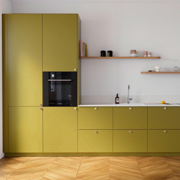 Simplicité et couleur se rencontrent dans ce projet où la cuisine entre dans la pièce de vie.