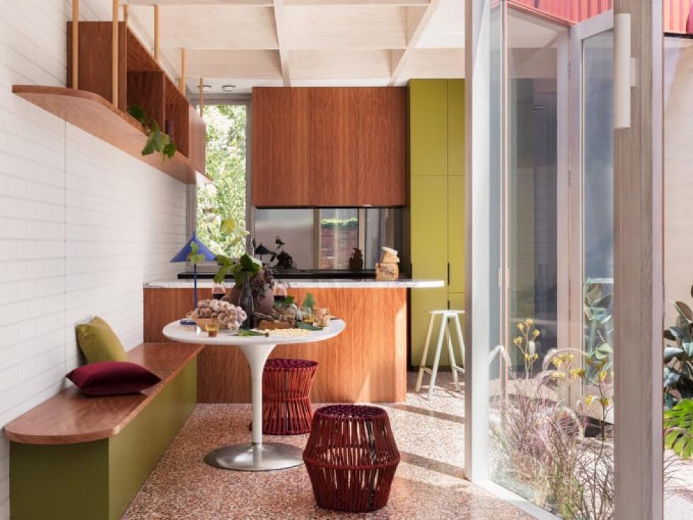 Walnut shades may be the first to spring to mind when we think of retro style, but at Plum Living, we love projects that reimagine the ‘norm’ when it comes to decor. This design by Wowowa is a perfect example. With wood as the base, the design team injects a boost of green onto the pillar and bench in the dining area. This colour adds a refreshing highlight to two spaces while creating unity. Now… over to you!