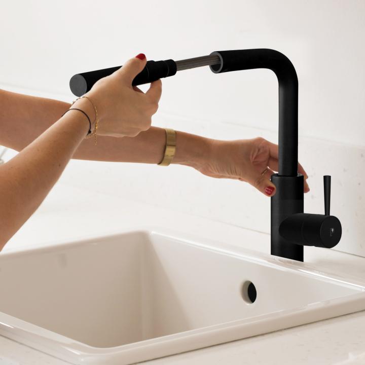 Matt black mixer tap in solid brass, perfectly matched to our handles.