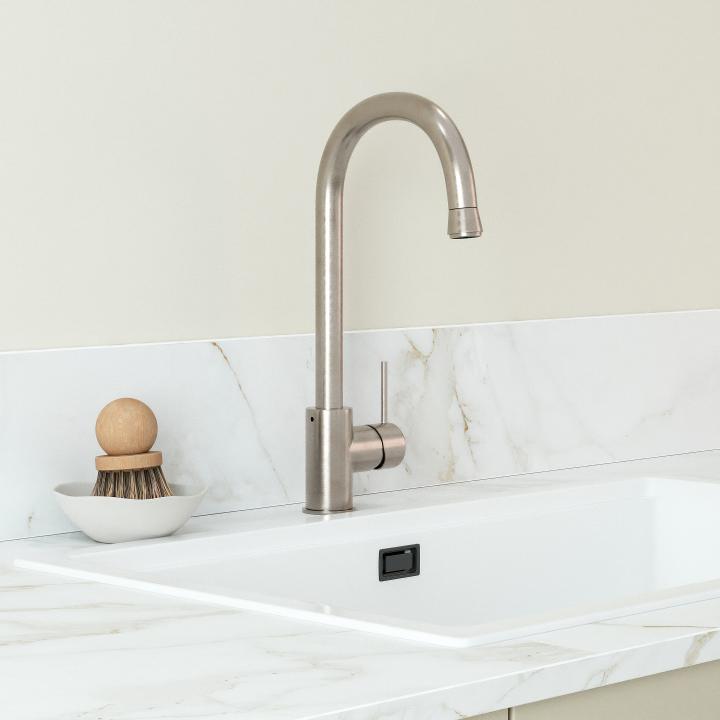 Solid brass tap, brushed nickel finish. Pull-out spray.