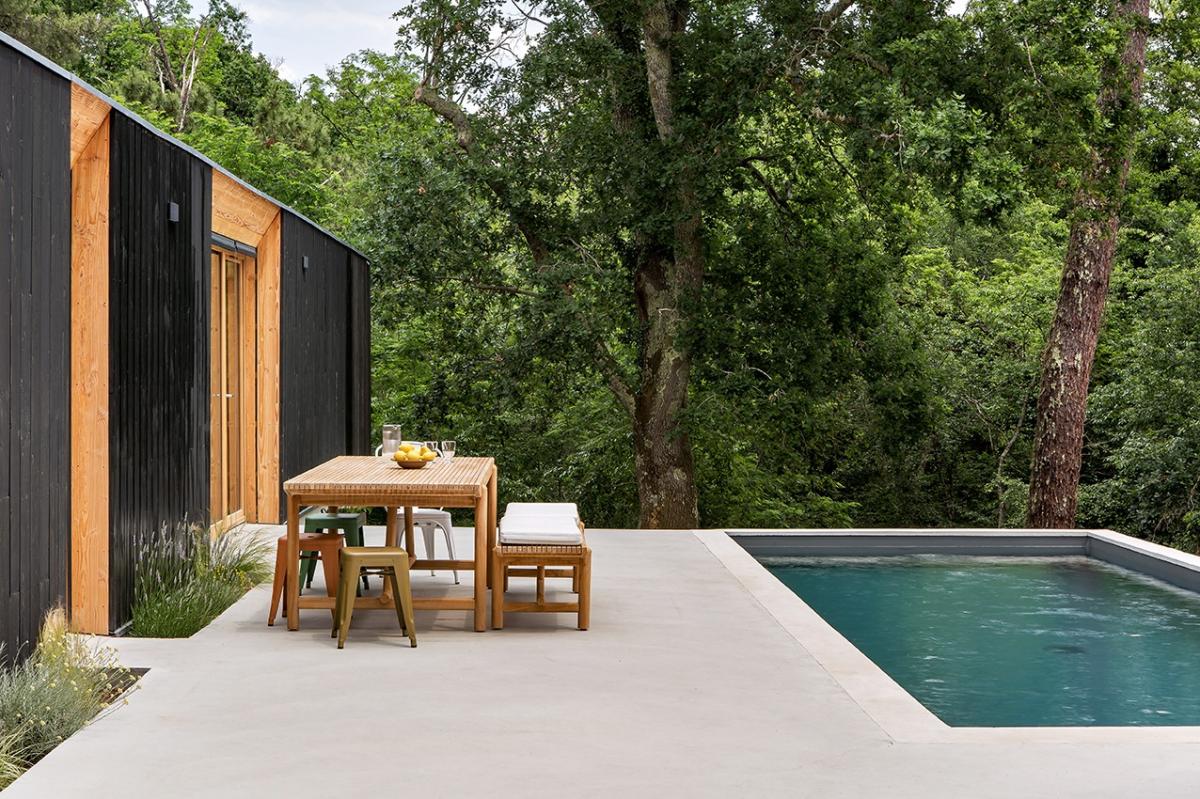 One year: that's how long Sabine had to transform this house from an concrete and pinewood shell, built on an empty sloping plot in the forest. "I still have trouble realising that this is truly our home, it's exactly what we dreamed of: that feeling of being on holiday all the time!" Both modern, sustainable and in sync with the region's style, Sabine and Maxime's home blends seamlessly with its surroundings. Outside, the swimming pool seems to float suspended above the trees. The same sensation can be felt on the ground floor and lower garden, where each window opens onto a forest vista, almost like works of art.